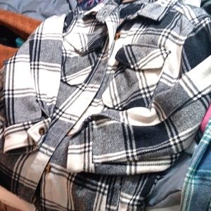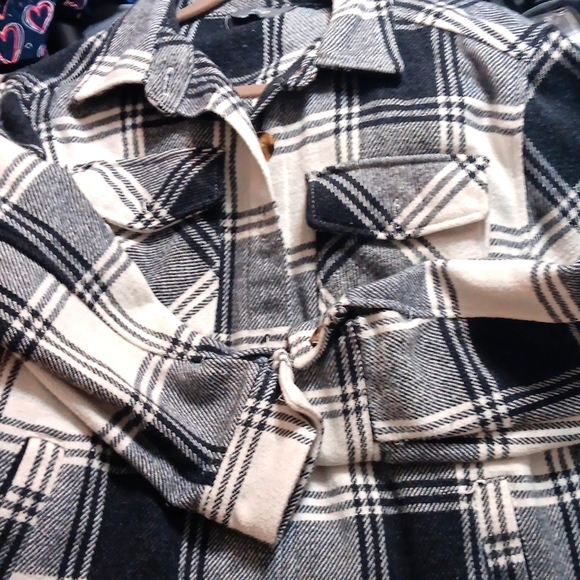shacket unsure of brand but super cute small plaid warm with side pockets oversized
