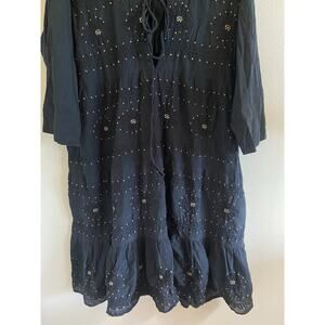 Shade Amour Black Embroidered Floral Vneck Tie Front Cotton Dress Boho Large
