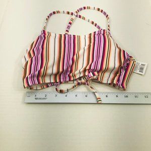 Shade And Shore Women's Size 34B Lightly Lined Longline Bralette Underwire Bikini Swim Top Striped New With Tags