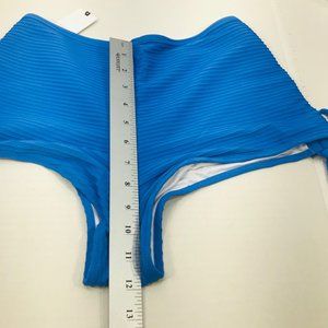 Shade And Shore Women's Size Medium 8-10 Textured Material High Waist Bikini Swim Bottom Blue New With Tags
