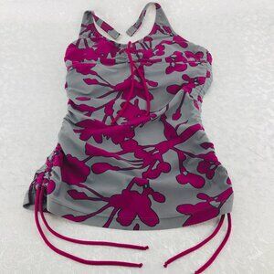 Shade Clothing Gray and Maroon Ruched Halter-Style Tankini Top Size M