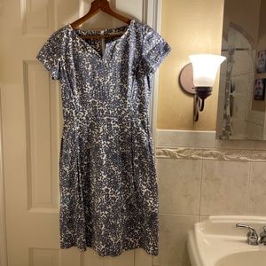 Shade Clothing, blue and white flowered dress, with pockets, size 6