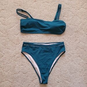 Dive into style with this chic teal swimwear set. Perfect for a day at the beach or pool.