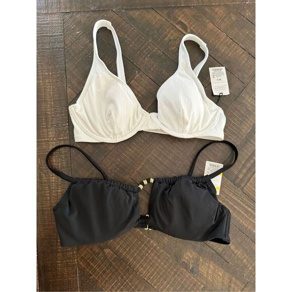 Shade & Shore 36C Black and White 2X Bikini Tops New