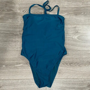 Shade & Shore Bandeau / Halter Tie Back One Piece Swimsuit Teal M