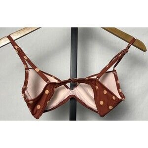 Shade and Shore Bikini Top 32B Swim Bra Underwire Padded Lined Push Up Copper Polka Dots Adjustable Stretch nylon spandex