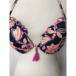 Shade & Shore Bikini Top Floral Ruffled Tassel Padded Swimwear