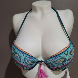 New With Tags . Shade & Shore Bikini Top Multi-Color with Gold Beads.