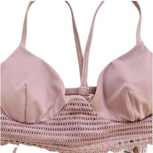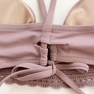 Shade & Shore Bikini Top Lavender Crochet Detail Tie Back Swimsuit Top Size 34B