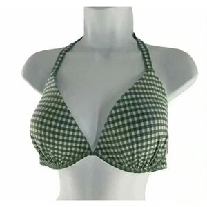 Shade & Shore Bikini Top Sage Green Plaid Padded Swimwear Bra Size 34DD