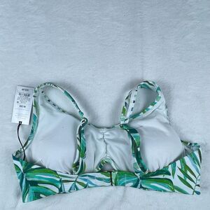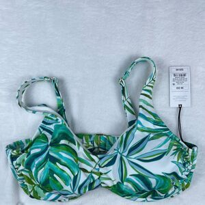 Shade & Shore Bikini Top Womens 36DD Green Leaf Print Shirred Removable Padded