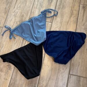 Shade & Shore Black Blue Bikini Bottom Vacation Beach Swimsuit Bathing Bundle SM