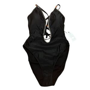 Shade & Shore Black Extra High Leg Bead Detail One Piece Swimsuit, Size S, NWT