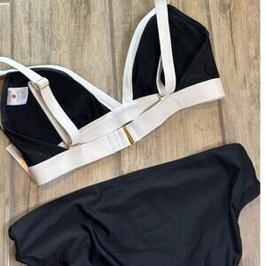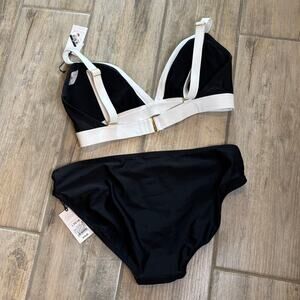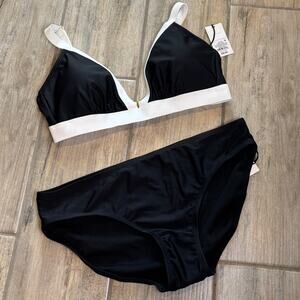 Shade Shore Black White Bikini Swimsuit Bathing Suit Two piece Size L 12/14 NWT