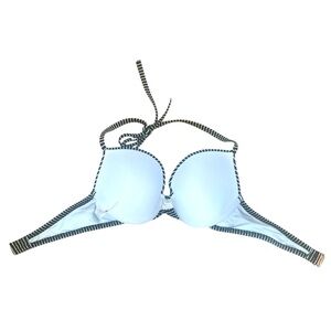 Stylish halter bikini top. Black and white stripes. Perfect for beach days. Underwire size 36 C
