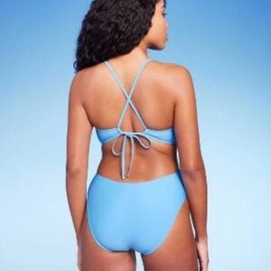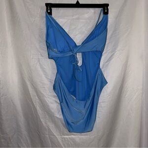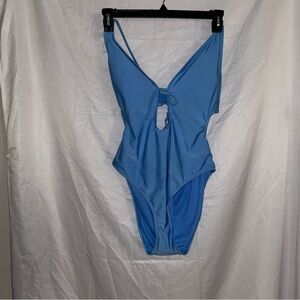 Shade & Shore Blue One Piece Swimsuit Plunging V-Neck Tie Front Medium Coverage