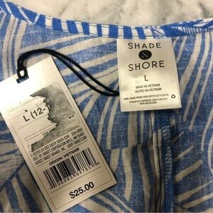 Shade & Shore Blue White Cropped Tie Front Linen Blend Coverup Size L NWT
