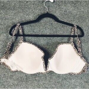Shade & Shore Bra 36DD Underwire Lightly Padded V Wire Plunge Black Cheetah