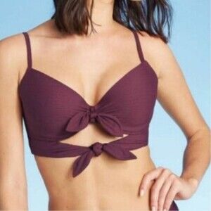 Shade & Shore Double Knot Front Underwire Bikini Top Women's 34 DD Burgundy Red