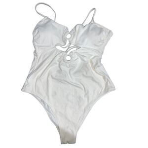 Shade & Shore Double O-Ring Front Lace-Up Back One Piece Swimsuit Off-White $40