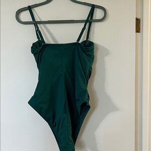 Stylish one-piece with ruched front. Adjustable straps for comfort. Ideal for beach days.