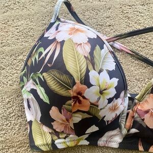 Stylish floral bikini top. Features crisscross straps. Used only twice.