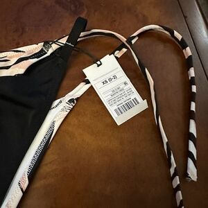 Shade & Shore High Leg Extra Cheeky Black & Pink Bikini Bottom XS Zebra NWT