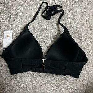 Wrap front, ribbed bikini top in black from Shade & Shore. Lightly lined. Ties at neck and hooks at back. Size 32B. New with tags.