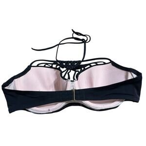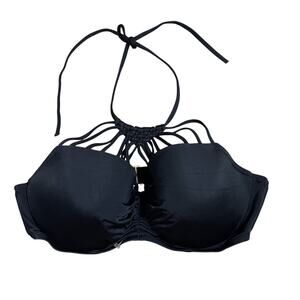 Shade & Shore Macrame High Neck Bikini Top 38C Black Boho Goth Costume NWOT