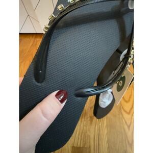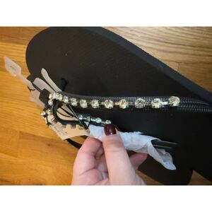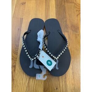 Shade & Shore Mary Women’s 9 Black Rhinestone Rubber Flip Flops Thongs Sandals