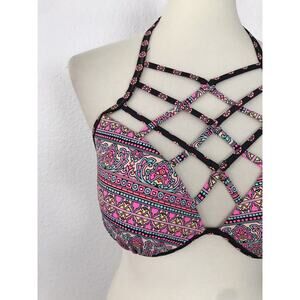 Shade & Shore Multicolor Print Padded Halter Bikini Top Swimwear