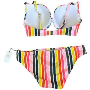 Shade & Short Multi Color Striped Bikini Padded Underwire NWT