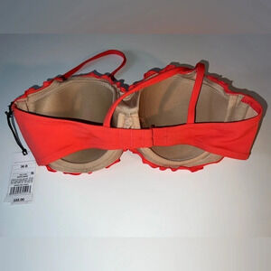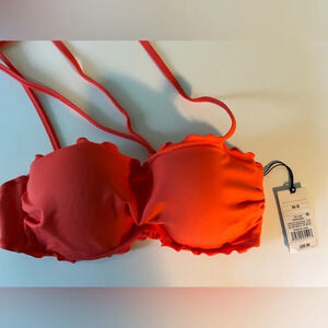 Shade & Shore, NWT, 34B scalloped edges, roughed sides, halter top tie and buckle close, lightly lined bikini top tag says red but looks like a orange/red