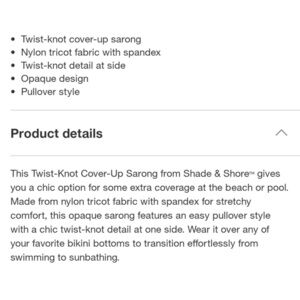 Shade & Shore NWT High Shine Twist Knot Bikini Bottom Cover-up Sarong Skirt