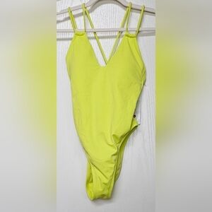 Vibrant neon yellow one piece. Double strap design. Perfect for a bold beach look. NWT!