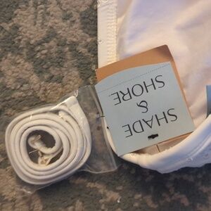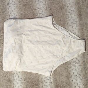 Shade & Shore Off-White Eyelet One Piece High Leg Cheeky Swimsuit W/Strap XL NWT