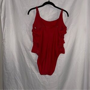 Bold Shade & Shore swimsuit in striking red. Ideal for sunny adventures.