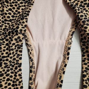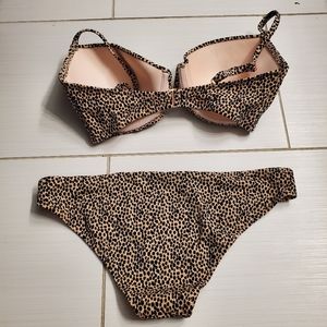 Shade & Shore Padded Push Up Bikini Top 34DD Bottoms M Leopard Print Ribbed Swim