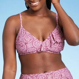 Shade & Shore Pink Ruffle Asymmetrical Bikini NWT