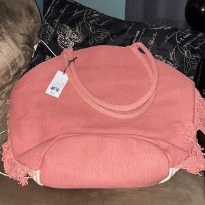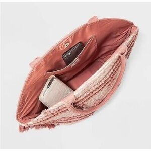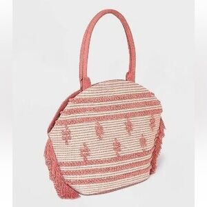 Shade & Shore Pink Straw Fringe Beach Tote Handbag