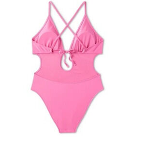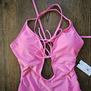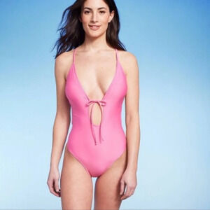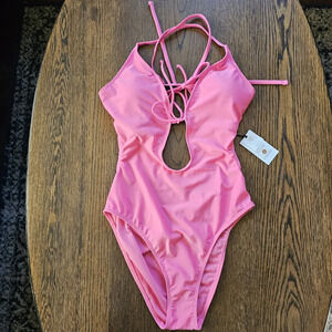 Shade & Shore Pink Tie-Front Plunge One Piece Swimsuit Size Women Small 4-6 NEW