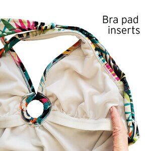 Shade & Shore Plunge Ring Detail One Piece Multi Tropical Print Swimsuit M