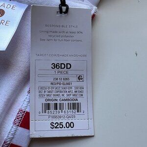 Stylish bikini top by Shade & Shore. Features bold red and white stripes. Perfect for a beach day.