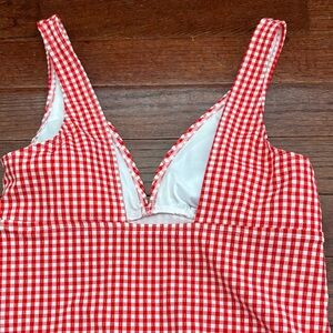 Vibrant red checkered swimsuit. Ideal for poolside fun. This is brand new never worn. No tags