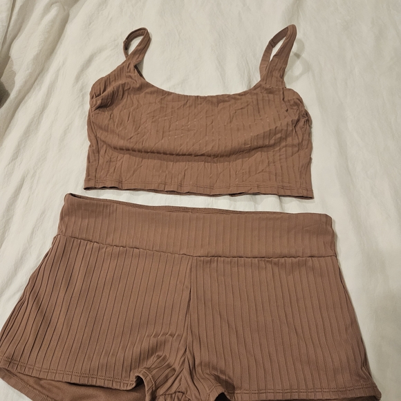Shade & Shore Ribbed Tan Intimate Set