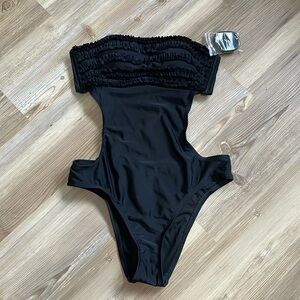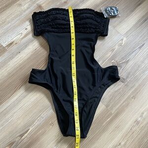 Shade & Shore Ruffle Front Size Monokini One Piece Swimsuit Black Size S NWT
