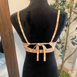 Stylish bikini top with a knot front. Features a snakeskin pattern. Adjustable straps for comfort.