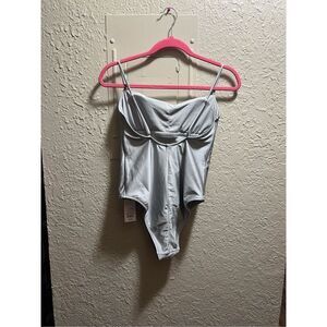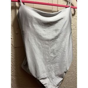 Shade & shore silver high leg cheeky one piece swimsuit. Woman’s size medium. NEW.