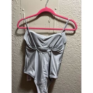 Shade & Shore Silver High Leg Cheeky One Piece Swimsuit Woman’s Medium NEW