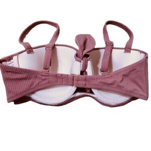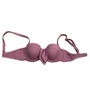 Great condition stretchy bikini top. Solid dusty rose color with textured stripes. Push-up top. Decorative bow tie at center.